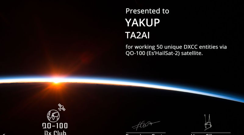 TA2AI Yakup Bey, QO-100 DX Club’ın Düzenlediği QO1-00 uydusu üzerindeki etkinlik kapsamında DXCC Bronz Award Ödülü Kazandı Batı Karadeniz Telsiz